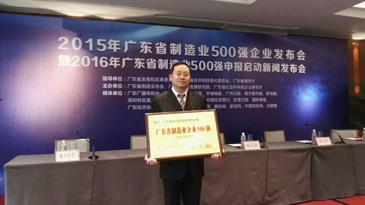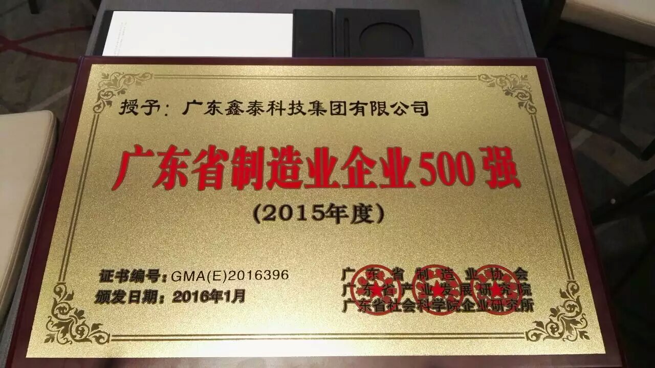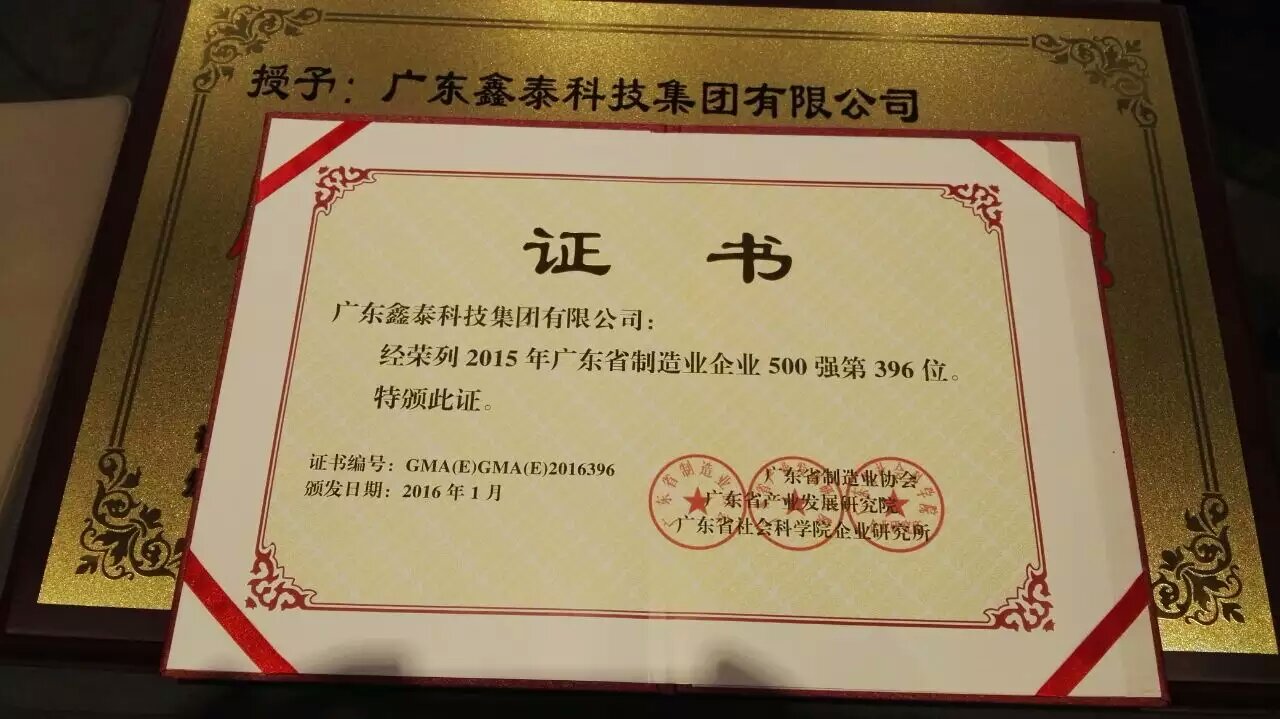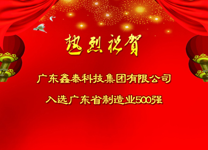 熱烈祝賀廣東鑫泰科技集團有限公司入選廣東省制造業500強