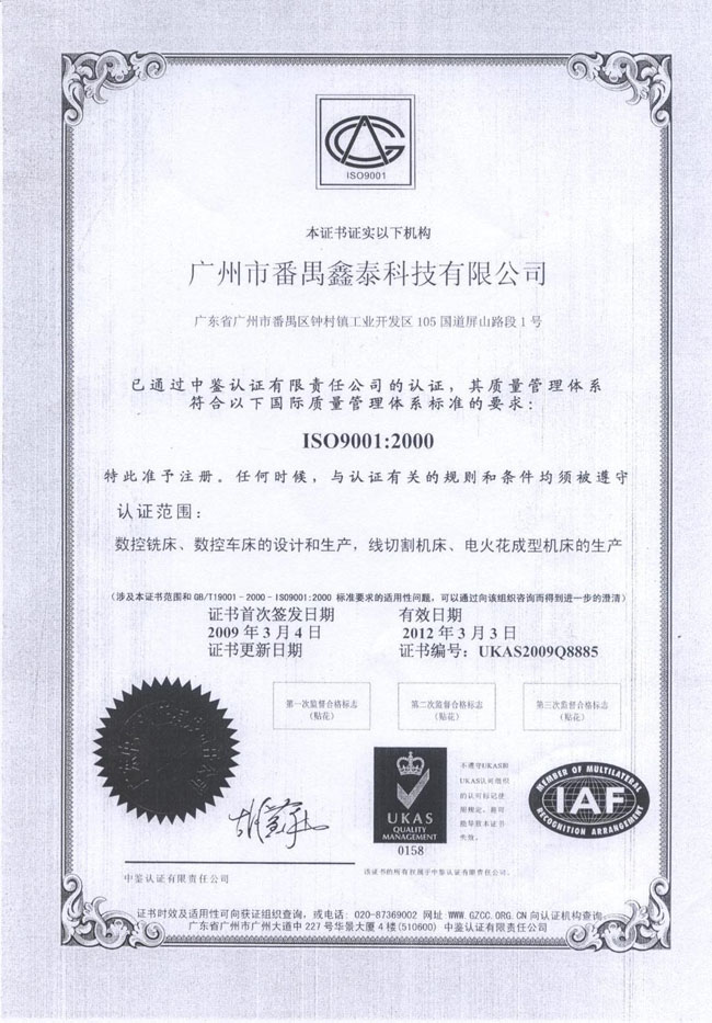 經過公司全體員工的辛勤努力,鑫泰集團的質量體系審核再次獲得通過,鑒證機構頒發新的ISO9001:2000質量體系證書,自2009年3月4日至2012年3月3日.